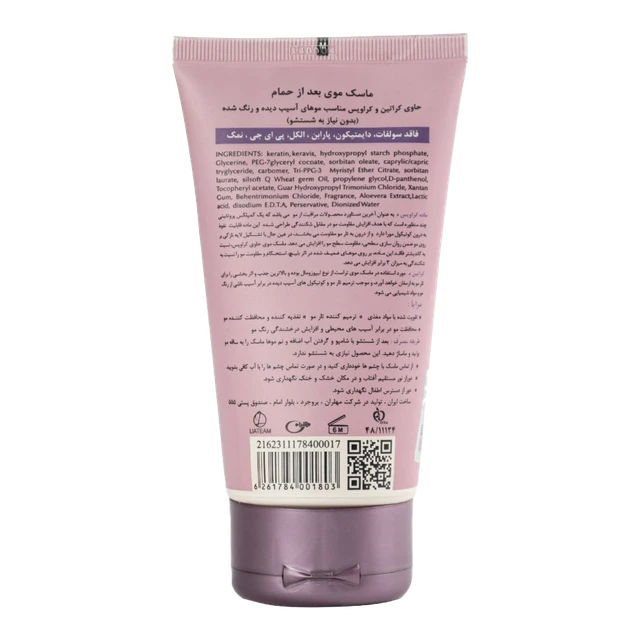 | نحوه مصرف | بعد از شستشو با شامپو و گرفتن آب اضافه و نم موها ماسک را به ساقه مو بزنید و ماساژ دهید. این محصول نیازی به شستشو ندارد |