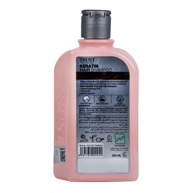 شامپو سر کراتین تراست، با دارا بودن کراتین و ویتامین E، با نرم کردن مو و کمک به استحکام ساختاری آن، مانع از شکستگی و آسیب تارهای مو میشود. این شامپو ضمن رفع وزی تارهای مو، به تثبیت رنگ، ترمیم و افزایش ضخامت مو کمک میکند.