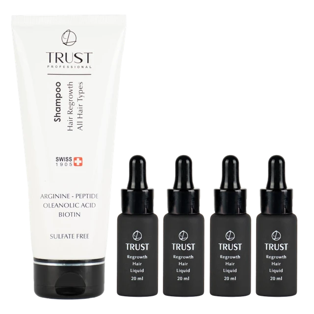 این کیت، مختص افرادیست که بارها از محصولات ضد ریزش موجود در بازار استفاده کردهاند اما نتیجه دلخواه خود را کسب نکردهاند! کیت تخصصی رویش مجدد تراست با استفاده از ترکیبات طبیعی، برای تاثیر گذاری بیشتر طراحی شده است و در مدت زمان 6 ماه، اثرات چشمگیری بر رشد مو خواهد داشت.