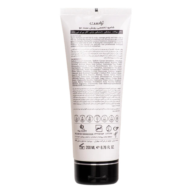 شامپو را بر روی مو و پوست سر خیس به آرامی ماساژ داده و پس از یک دقیقه آبکشی شود. در طول دوره درمان، میبایست در هر بار شستشو حتما از شامپوی تخصصی رویش مجدد مو استفاده نمایید. در طول دوره درمان، شامپو و محلول حتما در کنار هم استفاده شوند. در صورتی که در طول دوره مصرف، شامپو زودتر از محلول به پایان رسید، از شامپوهای ضد ریزش سری تخصصی تراست مناسب با موی خود (چرب، خشک و معمولی) استفاده نمایید.