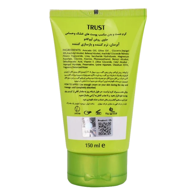 کرم آووکادوی تراست، با دارا بودن روغنهای کاملا طبیعی و خالص آووکادو موجب افزایش نرمی و لطافت و یکپارچگی عملکرد پوست میشود. اثر نرمکنندگی محصول به گونهایست که پس از جذب، چربی از خود به جا نخواهد گذاشت. غنی بودن این محصول از ویتامین E علاوه بر مهار رادیکالهای آزاد و جلوگیری از آسیبهای پوستی، موجب بازسازی پوست خواهد شد. همچنین این محصول با کنترل التهابات پوستی، انتخابی مناسب برای پوستهای حساس است. از طرفی خلوص روغنهای مورد استفاده در این کرم در کنار سایر مواد موثره بکار رفته شده در محصول ، موجب رطوبت رسانی طولانی مدت به پوست شده که گاها تا 24 ساعت دوام خواهد داشت.