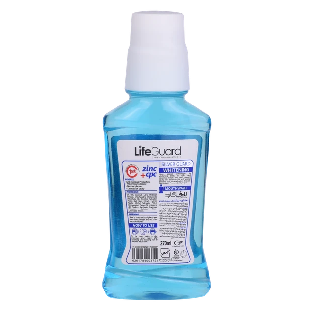 دهانشویه بزرگسال سفیدکننده (Silver Guard) برند لایف گارد با حجم 270 میلی لیتر