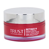 و در نهایت، آملیوکس موجود در کرم جوانساز رتینول تراست، با جلوگیری از تأثیر پرتوهای مضر UV و با خواص آنتیاکسیدانی ویژهای که دارد، چینوچروکهای پوستی را بهبود بخشیده و از شکستن و تغییر فرو پروتئین کلاژن و نیز پیری پوست جلوگیری میکند. در کنار مواد مؤثره مطرحشده، این محصول تراست، با عصاره دانه لوپینوس آلبوس، به حفظ استحکام و افزایش خاصیت کشسانی پوست، با لایزین آسپارتات، به بهبود سوختوساز سلولهای پوستی و تکثیر آنها، با روغن آووکادو، به حفظ استحکام و پایداری پوست و با هلیانتوس آنوس سید اویل، به بهبود آبرسانی و جلوگیری از پیری پوست، کمک میکند.