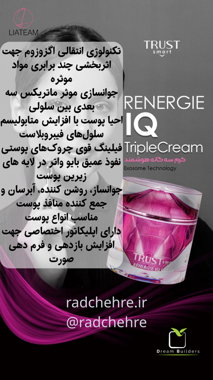 این ترکیب در حقیقت با استفاده از تکنولوژی انتقالی اگزوزوم، بستری را برای انتقال ترکیبات به داخل سلولهای پوستی فراهم کرده و به این ترتیب اصطلاحاً به بیدار شدن سلولهای پوستی و افزایش فعالیت و تکثیر آنها کمک میکند. اگزوزومها حامل ترکیبات پپتیدی موثر در احیای سلولهای پوستی و بازسازی پوست هستند که با استفاده از دو لایه لیپیدی خود وارد سلولهای پوستی میشوند و در عمق مشخصی از پوست تاثر خود را بر جای میگذارند. این اگزوزوم با استفاده در فرمولاسیون کرم سهگانه هوشمند تراست اسمارت با تحریک ساخت سلولهای جدید، چین و چروکهای پوست را برطرف کرده و به حفظ سلامت و جوانی پوست کمک میکند.