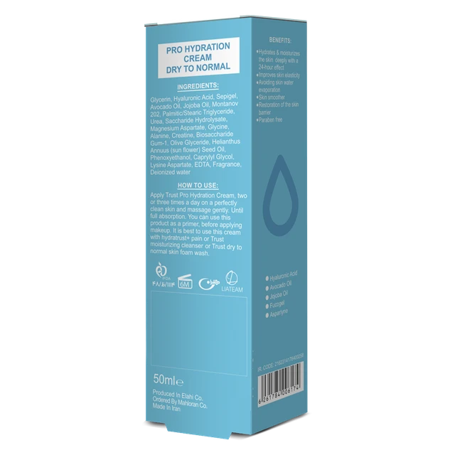 این کرم با برخورداری از مواد موثر منحصربهفرد و زیر نظر دانشگاه لوزان سوئیس تولید میشود. مواد موثری نظیر هیالورونیک اسید، کمپلکس فوکوژل و آسپارلین در کنار استفاده از روغن جوجوبا و آووکادو بصورت کلدپرس (Cold Press)، تاثیر بینظیری روی پوست شما ایجاد خواهد کرد. استفاده از ماده بی نظیرهیالورونیک اسید که از یکی از برترین مواد موثر در آبرسانی محسوب میشود، علاوه بر ایجاد رطوبت مورد نیاز پوست، موجب تاخیر در روند پیری پوست نیز میشود. هیالورونیک اسید موجود در کرم تراست با اتصال به مولکولهای آب روی پوست، موجب تقویت هیدراسیون موثر پوست خواهد شد.