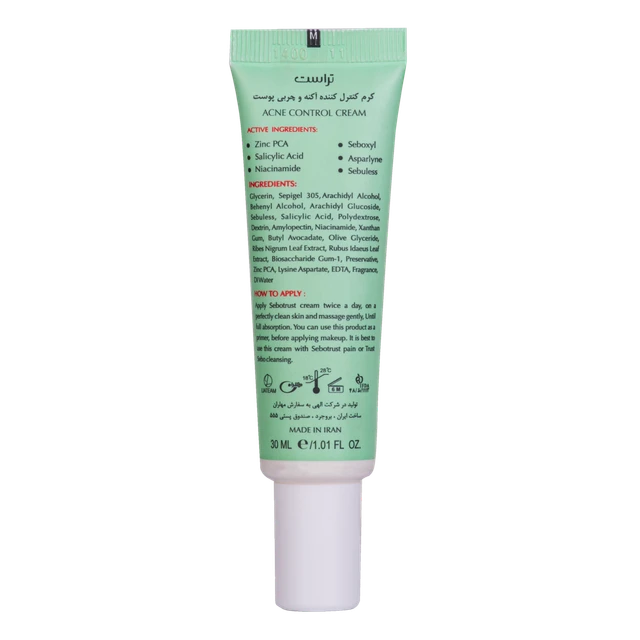حجم 30 میلیلیتر نحوه مصرف کرم را روی پوست تمیز قرار داده و ماساژ دهید تا جذب شود فرم محصول کرم جنسیت مصرف کننده عمومی نوع پوست پوست چرب کاربرد رفع و بهبود آکنه - کوچک کردن منافذ باز پوست - کمک به آبرسانی پوست - ضد قارچ - کنترل خارش پوست زمان مصرف دو بار در روز بعد از شستشو نوع عصاره انگور سیاه، تمشک، بید، یاس بنفش و اسید سالیسیلیک شرایط نگهداری دور از دسترس کودکان و نور آفتاب، جای خشک و خنک نوع بسته بندی تیوب، جعبه مدت انقضا 3 سال پس از تولید شماره پروانه بهداشت 1113/ظ/48 بازه زمانی مصرف