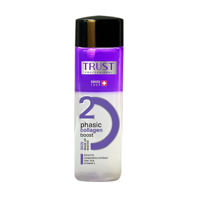 محلول پاککننده آرایش دوفازی تراست، تمام آلودگیها و مواد آرایشی معمولی و ضدآب را از پوستمان پاک کرده و اثری از آنها به جای نمیگذارد. این محصول با وجود ماده مؤثره پروتئین هیدرولیز شده کلاژن از پیری پوست جلوگیری کرده، باعث استحکام پوست و جلوگیری از باز شدن منافذ پوست می شود. محلول دوفازی ضمن پاککنندگی پوست به خاطر داشتن ماده مؤثره آکواکسیل در ساختار خود، پوست را آبرسانی کرده و مانع از تبخیر آب پوستی میشود. همچنین با داشتن عصاره بابونه و ویتامین ای در ترکیباتش از التهابات پوستی جلوگیری کرده، آن را نرم و باطراوت میکند و مانع از آسیب رادیکالهای آزاد به پوست میشود. زینک پی سی ای در فرمولاسیون محصول ترشح سبوم را کنترل کرده، منافذ پوستی را جمع کرده و از ایجاد جوش و آکنه روی پوست جلوگیری میکند. در ضمن عصاره روغن بادام در این محلول دوفازی تراست به آبرسانی، تقویت پوست و پاکسازی کامل مواد آرایشی از روی پوست کمک شایانی میکند.