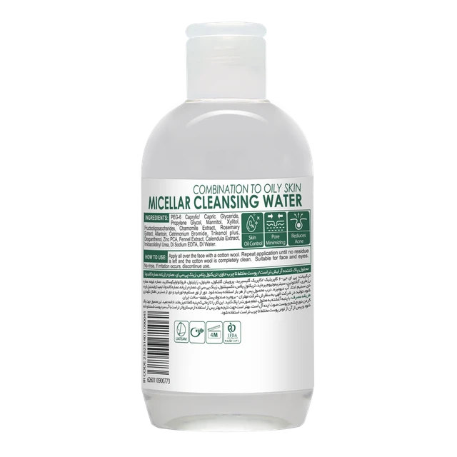 حجم 250 میلیلیتر نحوه مصرف با پنبه آغشته به محلول، تمام صورت را پاک کنید. این کار را تا زمانی که پنبه کاملا تمیز بماند، ادامه دهید. این محصول جهت پاک کردن دورچشم و پوست صورت ایده آل است ، حتما بعدش شسته شود فرم محصول محلول جنسیت مصرف کننده عمومی نوع پوست مختلط تا چرب کاربرد پاک کردن آرایش (حتی آرایشهای ضدآب) بدون ایجاد تغییر در لایههای محافظ پوست، تمیز کردن انواع آلودگیها و ناخالصیها از روی پوست، تنظیم و تعدیل کردن ترشح غدد چربی، مات کردن و جمع کردن منافذ پوست، حفظ pH فیزیولوژیک پوست زمان مصرف صبحها بعد از بیداری، شبها قبل از خواب و در زمان پاک کردن آرایش مواد مؤثره تریکنول، زینک پی سی ای، عصاره رازیانه، عصاره کالندولا شرایط نگهداری دور از دسترس کودکان و نور مستقیم خورشید، در دمای زیر 28 درجه سانتیگراد نوع بسته بندی قوطی شفاف مدت انقضا 3 سال تاییدیه Swiss Fine Cosmetic شماره ی تاییدیه 1905 شماره پروانه بهداشت 48/ظ/1131 بازه زمانی مصرف محصول بعد از باز شدن 4 ماه هرچقدر هم برای آرایش صورتتان زحمت بکشید، در پایان روز پیش از اینکه سرتان را روی بالش بگذارید، بایستی با اثر هنریای که خلق کردهاید خداحافظی و آن را پاک کنید؛ برای این کار میسلار واتر یا محلول پاککننده آرایش بهترین گزینه پیش روی شماست.