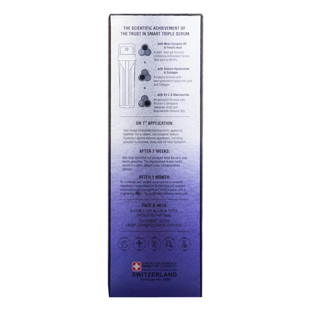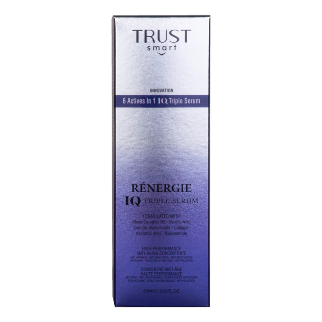 سرم سهگانه هوشمند تراست برای اولین بار به عنوان قویترین محصول حاوی سه نوع سرم روشنکننده، ضد چروک و جوانساز پوست در قالب یک محصول طراحی شده است. سرم روشنکننده حاوی ترکیبات فعال اصلی ویتامین C و نیاسینآمید است که به طور چشمگیری به رفع لکهای پوست و جلوگیری از تیرگی پوست ناشی از عوامل مختلف کمک میکند. این محصول با داشتن ترکیبات فعال فرولیکاسید و مزوکمپلکس آر ای در فرمولاسیون سرم جوانساز خود، توانایی بینظیری برای ساخت سلولهای جدید پوستی و بازسازی و جوانسازی پوست دارد. مزوکمپلکس مورد استفاده در فرمولاسیون این سرم، با داشتن انواع ترکیبات فعال پپتیدی، آمینواسیدها، هیالورونیکاسید، مواد معدنی و انواع ویتامینها، تاثیر منحصر به فردی در بازسازی و جوانسازی پوست دارد. کلاژن و هیالورونیکاسید مورد استفاده در فرمولاسیون سرم ضد چروک هم بعد از استفاده از سرم بر روی پوست تاثیر همافزایی با مزوکمپلکس و فرولیک در آبرسانی، رفع چین و چروکها و افزایش استحکام پوست دارد. بنابراین سرم سهگانه هوشمند تراست با داشتن سه نوع سرم با ترکیبات فعال آبرسان، افزایشدهنده استحکام پوست، جوانکننده و ضد چروک و روشن کننده پوست، به عنوان محصولی متفاوت و بینظیر به بازار معرفی گردید.
